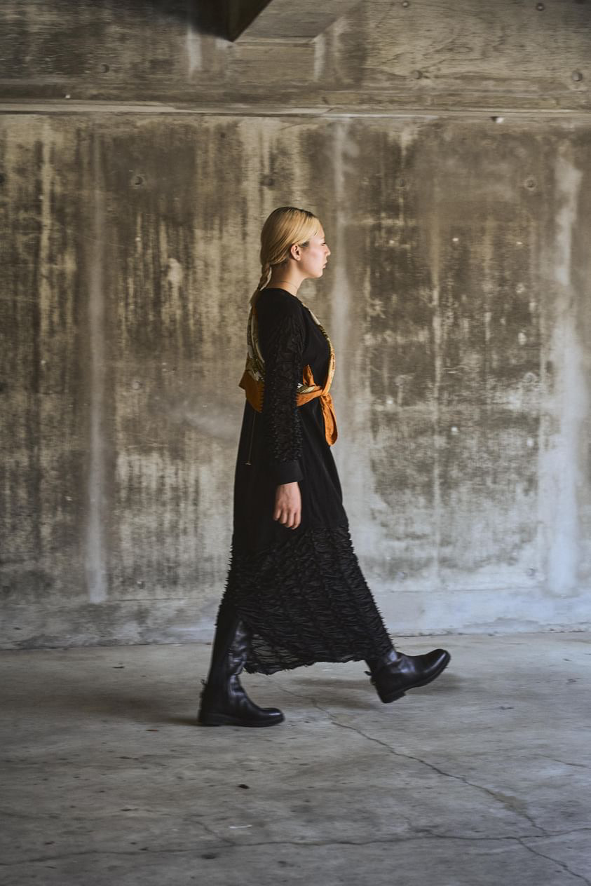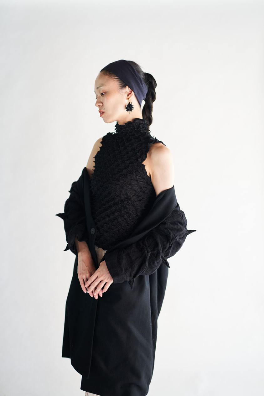 「伝統の技術をデイリーファッションに」をコンセプトに絞りを形状記憶したパンチのあるマテリアルをメインにシンプルでモードなデザインの洋服を展開しています。
